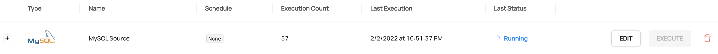 Once you've created your Ingestion Source, you can run it by clicking 'Execute'. Shortly after, you should see the 'Last Status' column of the ingestion source change from N/A to Running. This means that the request to execute ingestion has been successfully picked up by the DataHub ingestion executor.